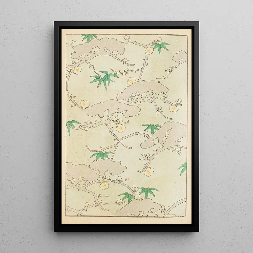 Kunsttrykket af Bijutsukai Pl178 inviterer til en fordybelse i en verden, hvor naturen og kunsten mødes med ynde. De livlige farver og de blomsteragtige mønstre væves sammen for at skabe en beroligende, næsten meditativ atmosfære. Teknikken anvendt af Furuya Korin, med sine flydende og præcise penselstrøg, giver liv til hvert element, hvilket gør lærredet levende og dynamisk. Dette maleri fremkalder en dans mellem skygge og lys, hvor hver nuance bidrager til den overordnede harmoni, og tilbyder en rig og fængslende visuel oplevelse.