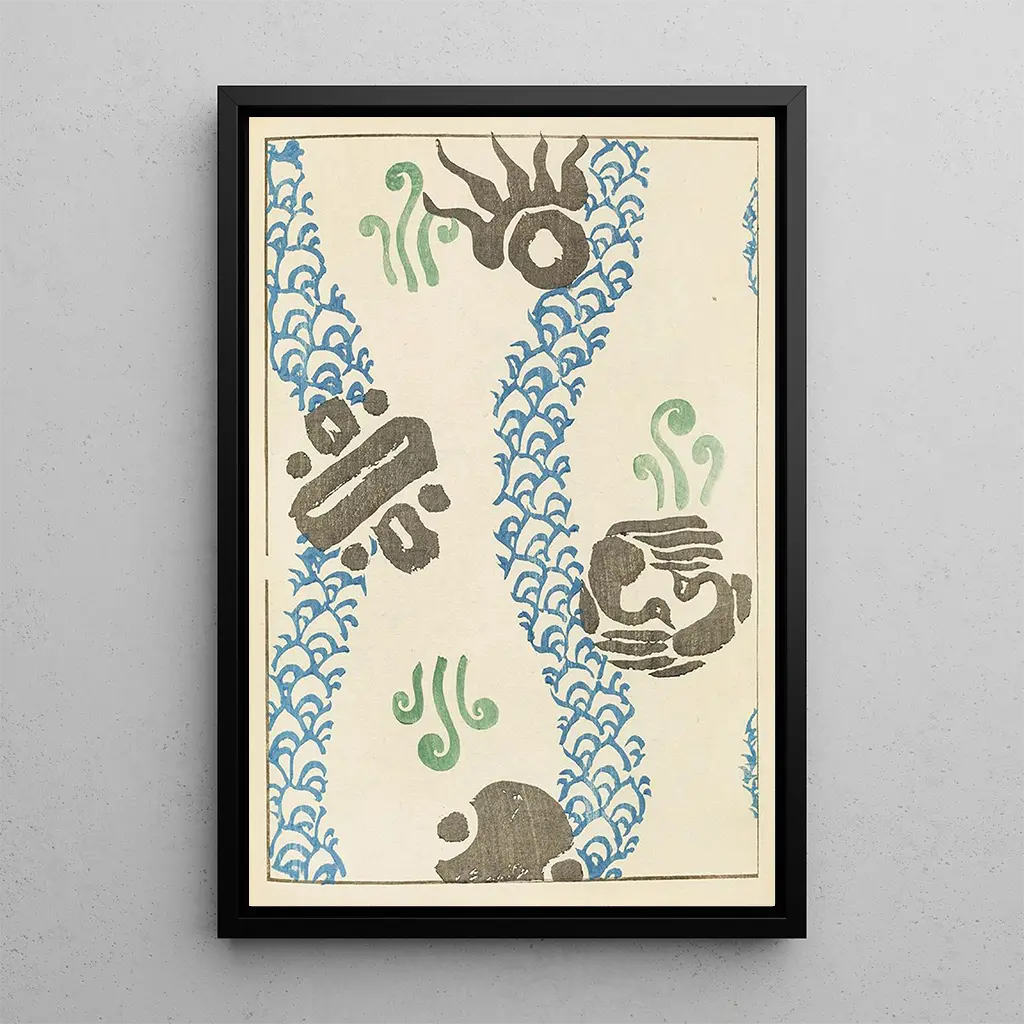 Kunsttrykket af Bijutsukai Pl231 tager os med ind i et univers, hvor farverne vibrerer, og formerne væves ind i hinanden med ynde. Furuya Korin, mester i japansk træsnitkunst, bruger rige nuancer og flydende mønstre til at skabe en atmosfære, der både er rolig og dynamisk. Hvert element i kompositionen synes at fortælle en historie og inviterer seeren til at udforske nuancerne og detaljerne. Teknikken med kunsttryk, med sine lag af farver, giver værket en dybde, der fanger blikket og fantasien. Dette lærred er en sand hyldest til naturens skønhed, hvor hvert penselstrøg fremkalder en følelse af lethed og poesi.