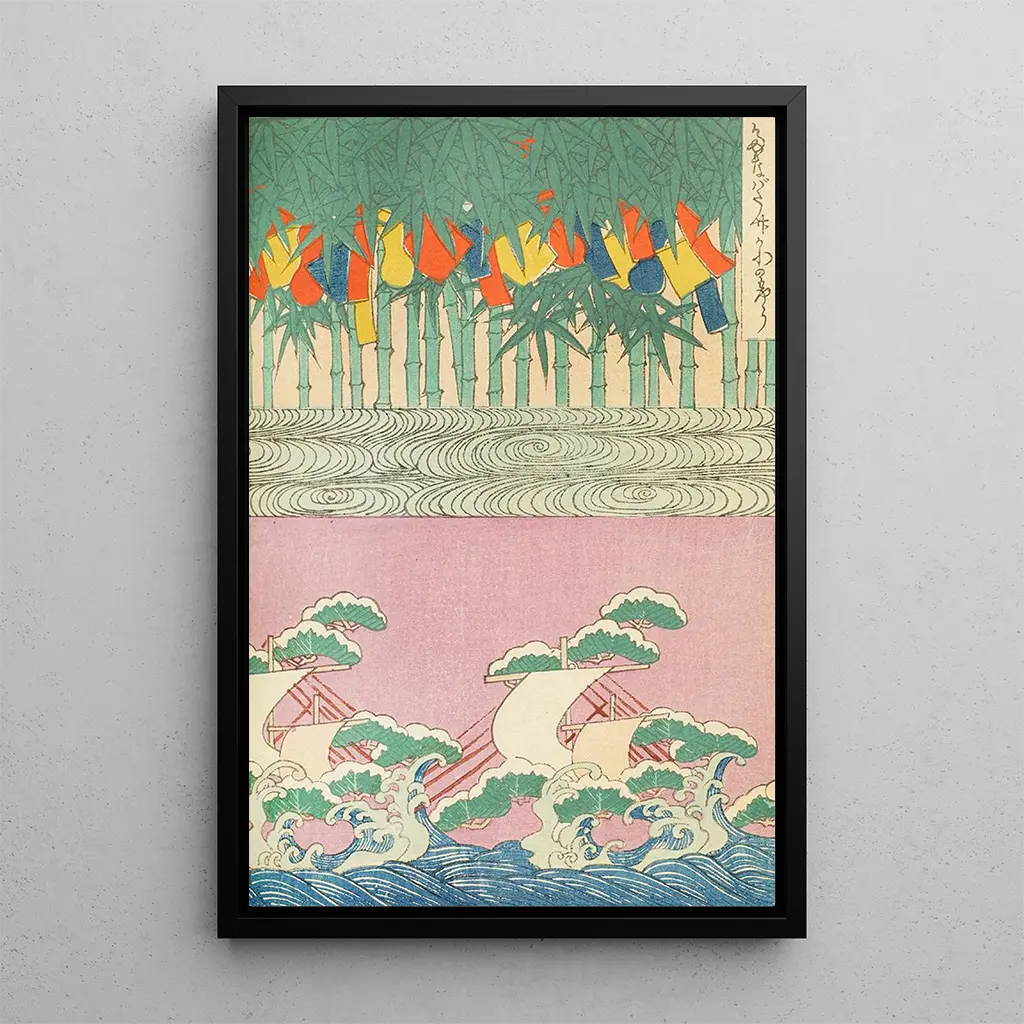 Kunsttrykket af Bijutsukai Pl113 af Furuya Korin fremkalder en delikat dans mellem naturen og abstraktionen. De livlige farver og de flydende former væves sammen for at skabe en fredelig og kontemplativ atmosfære. Brugen af blæk og maling på papir vidner om en imponerende teknisk kunnen, hvor hver penselstrøg synes at være tænkt for at fange essensen af de afbildede elementer. De blomsterlige motiver og nuancerne af blå og guld inviterer seeren til at dykke ned i en poetisk verden, hvor naturens skønhed blander sig med en unik kunstnerisk fortolkning.