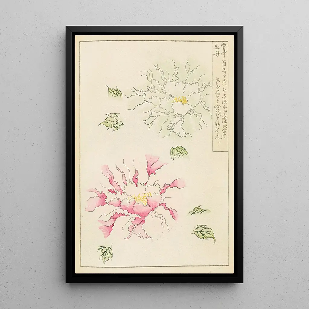 Kunsttrykket af Bijutsukai Pl229 tager os med til en frodig have, hvor hver blomst synes at danse i den lette brise. De skinnende farver, der spænder fra blid rosa til strålende grøn, skaber en glad og beroligende stemning. Teknikken med ukiyo-e, anvendt af Furuya Korin, gør det muligt at fange teksturernes og nuanceernes subtilitet. Dette værk, både delikat og levende, fremkalder den flygtige skønhed af blomsterne og minder os om naturens vigtighed i japansk kunst. Hvert blik på dette kunsttryk er en invitation til drømmende refleksion og kontemplation.