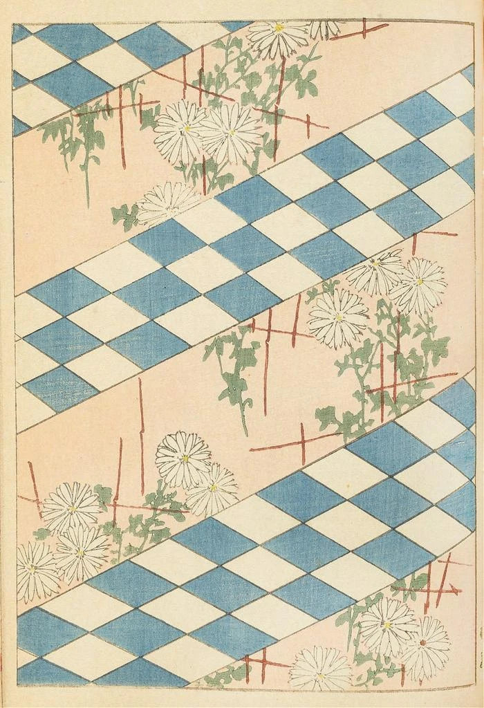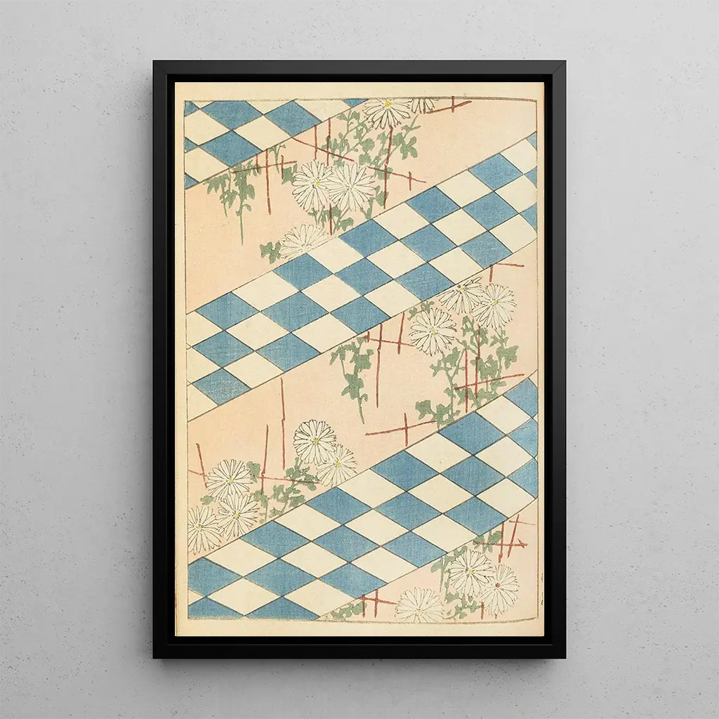 Kunsttrykket af Bijutsukai Pl58 inviterer til en fordybelse i en verden, hvor naturen og kunsten mødes med ynde. De livlige farver og de blomsteragtige mønstre flettes sammen og skaber en beroligende og kontemplativ atmosfære. Teknikken med ukiyo-e, typisk for Edo-perioden, afslører en omhyggelig håndværksmæssig kunnen, hvor hver detalje er omhyggeligt arbejdet. Nuancerne af blå og rød supplerer hinanden i harmoni, mens de flydende linjer i de naturlige elementer giver en følelse af bevægelse. Dette maleri fremkalder en ro, der transporterer betragteren til en hemmelig have, hvor hvert blik afslører en ny facet af dens skønhed.