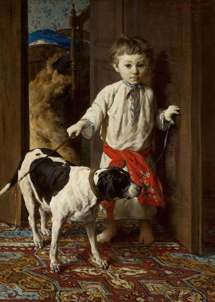 Witold Pruszkowski, født i 1846, er anerkendt som en af de mest indflydelsesrige malere i Polen ved slutningen af det 19. århundrede. Hans værk er en del af en rig kunstnerisk kontekst, hvor han blander realisme med impressionistiske elementer, samtidig med at han henter inspiration fra landets folkelige traditioner. Pruszkowski har formået at fange dagligdagen med stor finesse, og "Søn af kunstneren med en hund" er et perfekt eksempel. Hans kunstneriske tilgang vidner om en dyb forståelse for menneskelige følelser og et ønske om at bevare enkle, men betydningsfulde øjeblikke.