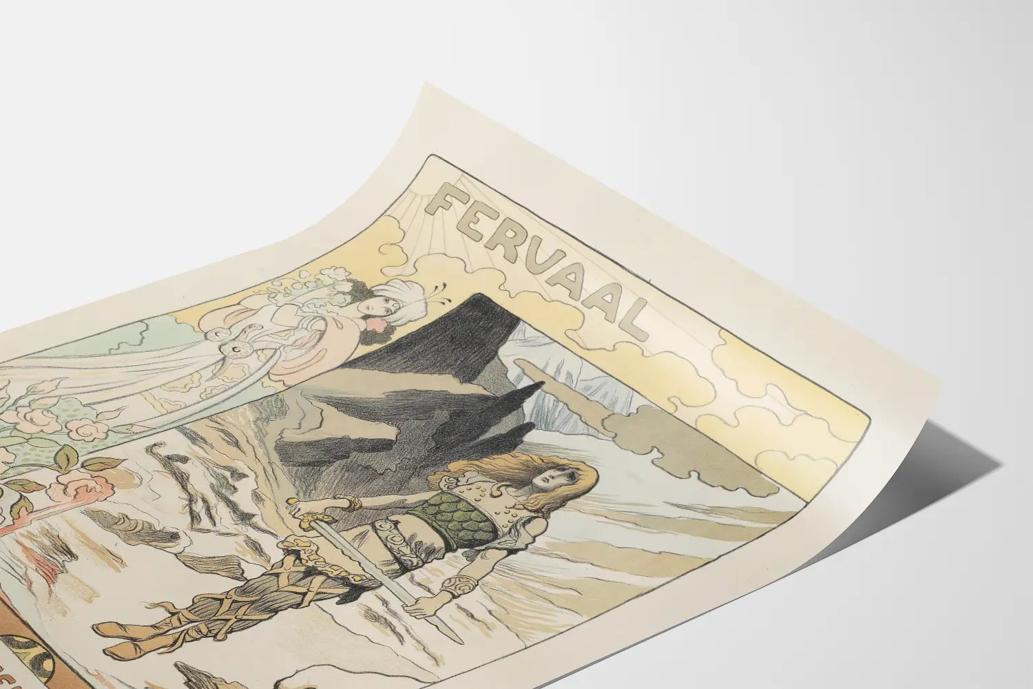 Med omhu for detaljer og varme, bløde farver udtrykker denne plakat en atmosfære, der er både episk og poetisk, understøttet af det bjergrige landskab i baggrunden. Inscriften « FERVAAL » øverst samt navnet Vincent d'Indy fremhæver tydeligt motivet uden at overbelaste designet.