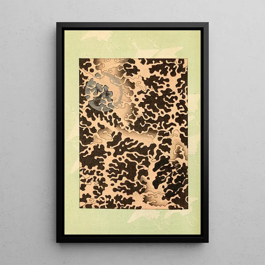 Kunsttrykket af Bijutsukai Pl89 tager os med til en verden, hvor naturen er i fokus med en slående visuel poesi. De livlige farver og de fine mønstre kombineres for at skabe en atmosfære af ro og skønhed. Hvert element i dette værk er omhyggeligt arrangeret, hvilket inviterer betragteren til en dyb refleksion. Nuancerne af grøn og rød fremkalder rigdommen i floraen, mens de flydende former tilføjer en beroligende dynamik til helheden. Det er en ægte ode til naturen, der vækker sanserne.
