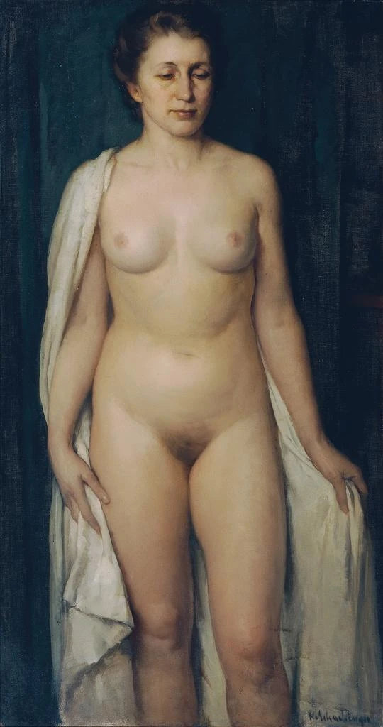 Kunsttrykket af "Nu feminin stående" er et dristigt dekorativt valg for dem, der ønsker at tilføre deres rum et kunstnerisk præg. Uanset om det er i en stue, et soveværelse eller et kontor, vil dette kunsttryk tiltrække opmærksomhed og skabe samtaler. Dets trykkvalitet sikrer en trofast gengivelse af detaljerne og farverne i det originale værk, samtidig med at det tilbyder en raffineret æstetik. Ved at integrere dette kunsttryk i din indretning tilføjer du en kunstnerisk dimension, der beriger atmosfæren i dit hjem, samtidig med at du hylder Hans Schachingers talent.