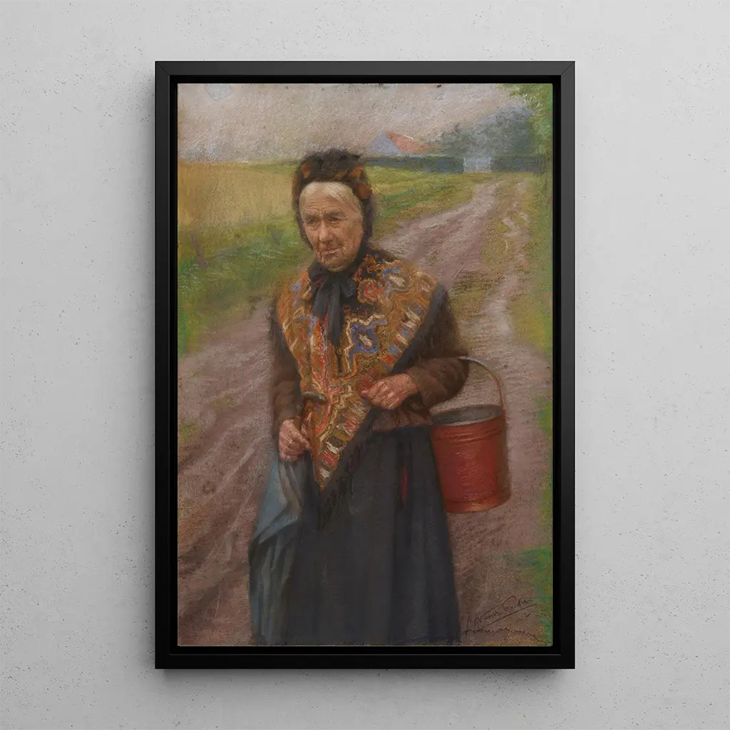 Kunsttrykket af "Femme med kurv" er et dekorativt stykke, der vil berige dit hjem med sin tidløse charme. Uanset om du ønsker at forskønne en stue, et kontor eller et soveværelse, tilføjer dette kunsttryk et strejf af ægthed og varme. Dets kvalitet af reproduktion sikrer en trofast gengivelse af detaljerne og farverne i det originale værk, hvilket gør det muligt fuldt ud at værdsætte dets æstetiske appel. Ved at vælge dette lærred inviterer du ikke blot et kunstværk ind i dit rum, men giver også en refleksion over skønheden i hverdagslivet og kvinders arbejde gennem tiderne.