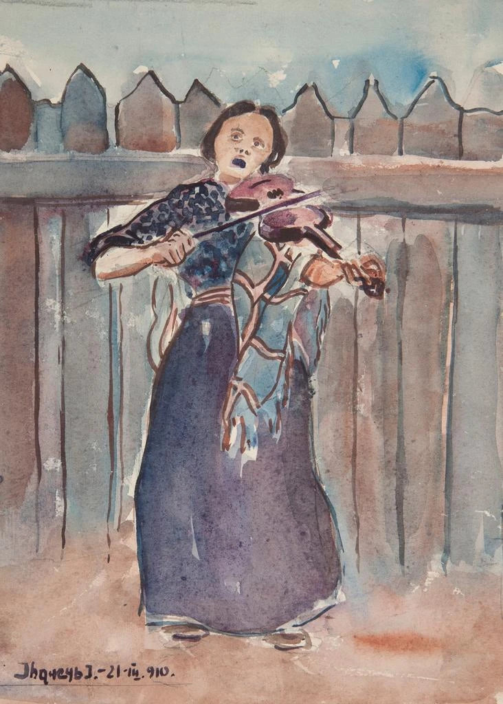 Kvinde, der spiller violin - Ivan Ivanec | Kunsttryk