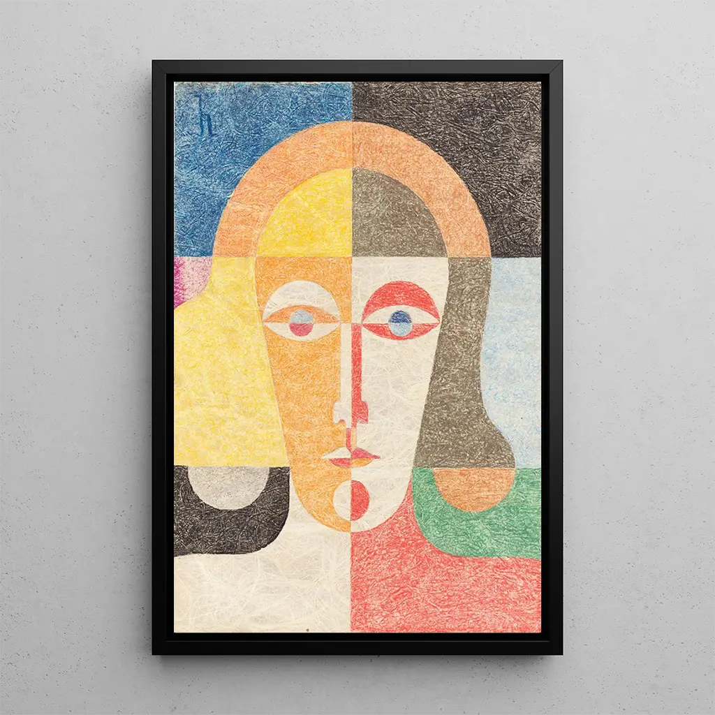 Kunsttrykket af Heinrich Hoerles Tævehoved er et fængslende værk, der fremkalder en dyb introspektion over kvindelighed. Med geometriske linjer og livlige farver udstråler dette lærred en atmosfære, der er både dynamisk og rolig. De stiliserede former af den kvindelige figur, fremhævet gennem kontraster af lys og skygge, inviterer betragteren til at reflektere over kvindens identitet og opfattelse i det moderne samfund. Hoerles teknik, der blander kubisme og ekspressionisme, skaber en visuel spænding, der fanger øjet og samtidig fremkalder eftertanke om det afbildede emne.