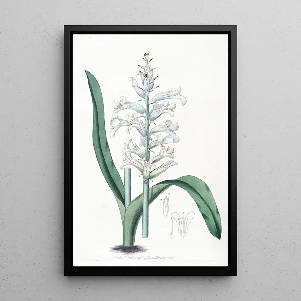 Kunsttrykket af værket "Lachenalia à fleurs bleu pâle" af Sydenham Edwards tager os med til en frodig have, hvor blidheden i farverne blander sig med formernes finesse. Nuancerne af delikat blå, kombineret med grønne strejf, skaber en visuel harmoni, der fremkalder ro. Akvarellens teknik, mestret af Edwards, gør det muligt at gengive gennemsigtigheden og letheden i blomsterbladene, hvilket giver liv til denne fascinerende plante. Hvert detalje er omhyggeligt gengivet, hvilket inviterer betragteren til at værdsætte naturens subtile skønhed.