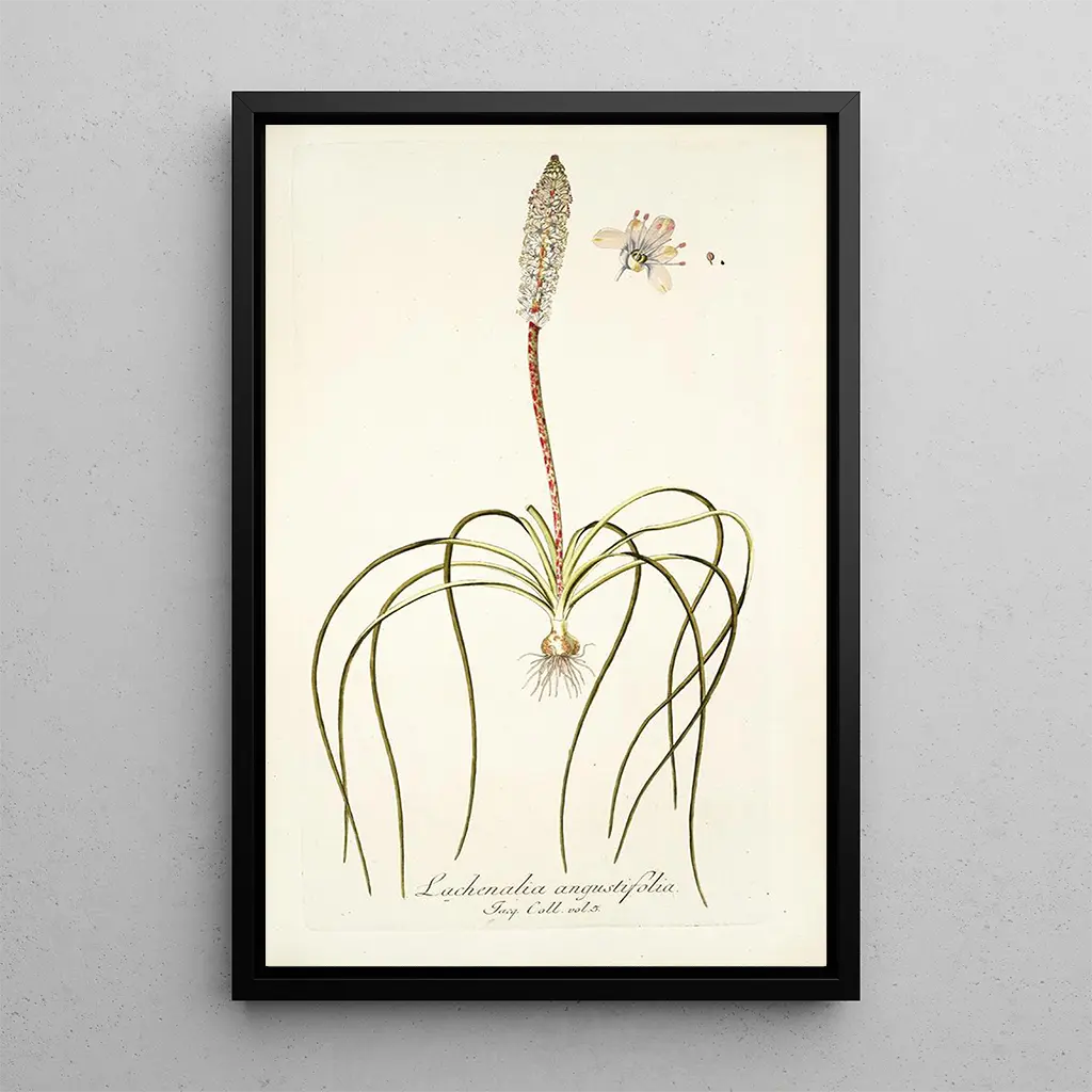 Kunsttrykket af Lachenalia angustifolia er et dekorativt stykke, der vil pryde dit opholdsrum, uanset om det er i stuen, på kontoret eller i soveværelset. Det høje trykkvalitet sikrer en bemærkelsesværdig trofasthed over for detaljerne og farverne i det originale værk, og tilfører et strejf af friskhed og vitalitet til din indretning. Ved at vælge dette lærred giver du dit hjem en invitation til at betragte naturen, samtidig med at du beriger dit miljø med et kunstværk af stor æstetisk og pædagogisk værdi.