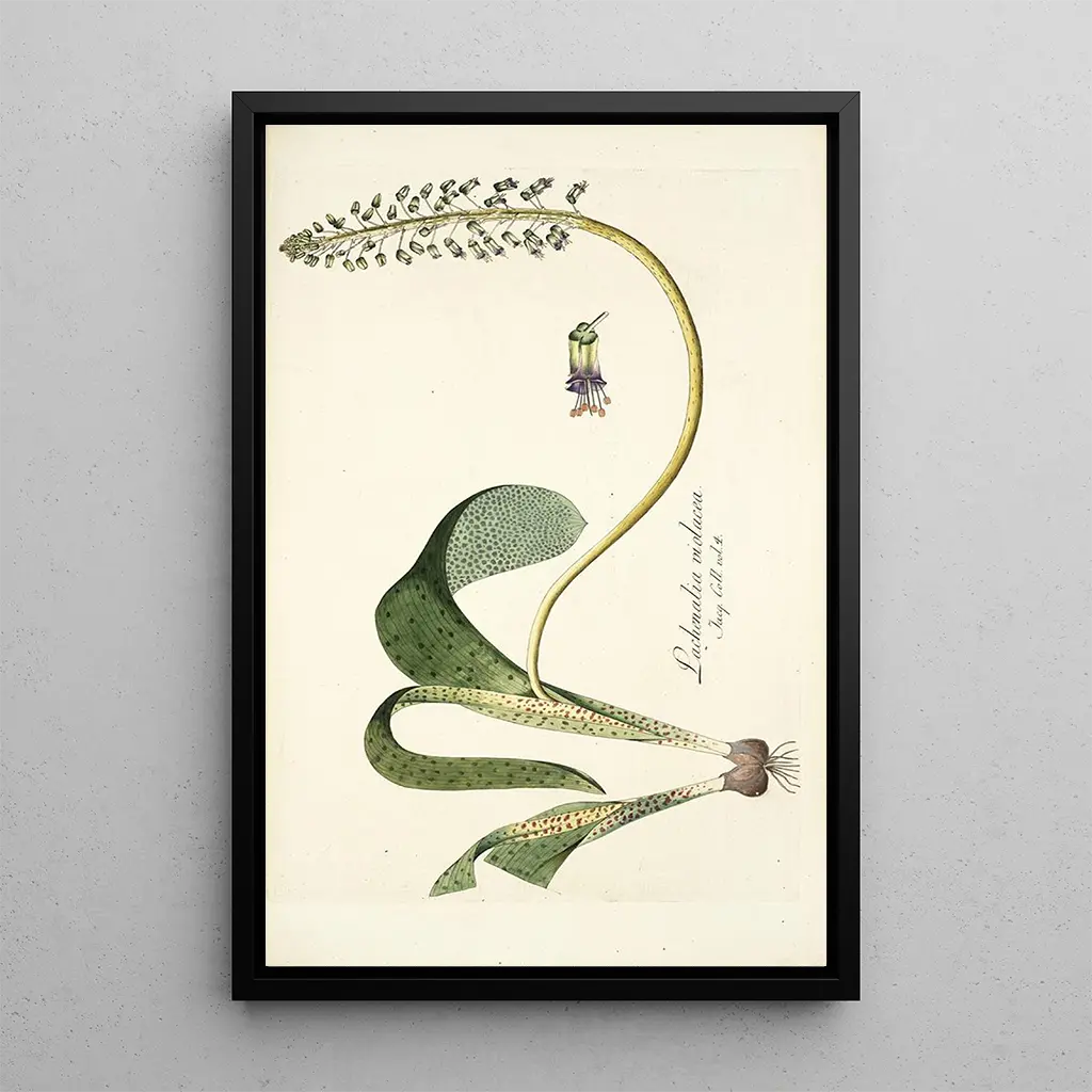 Kunsttrykket af Lachenalia violacea er et perfekt valg til at forskønne dit opholdsrum, hvad enten det er stue, kontor eller soveværelse. Kvaliteten af kunsttrykket sikrer en trofast gengivelse af de livlige nuancer og de fine detaljer i det originale værk, hvilket tilføjer et strejf af elegance til din indretning. Dette billede, med sin ubestridelige æstetiske appel, inviterer til eftertanke og flugt, hvilket gør hvert blik til et øjeblik af ro og forundring. Giv dig selv dette lærred for at berige dit hjem med en elegant blomsteragtig note.