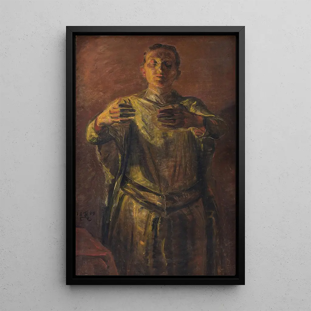 L'œuvre "Studiet af Lady Macbeth" af Kristian Zahrtmann er en slående skildring af den følelsesmæssige intensitet, der bor i Shakespeares karakter. Lærredet, rigt på mørke farver og dramatiske nuancer, fremkalder en atmosfære af spænding og mystik. Zahrtmann bruger oliemalingsteknikker til at skabe teksturer, der giver liv til Lady Macbeths plagede udtryk. Skygger og lys blandes dygtigt, hvilket understreger den indre konflikt hos protagonisten, mens den slørede baggrund synes at afspejle hendes forstyrrede sind. Dette værk inviterer til en dyb refleksion over menneskelige passioner og konsekvenserne af ambition.