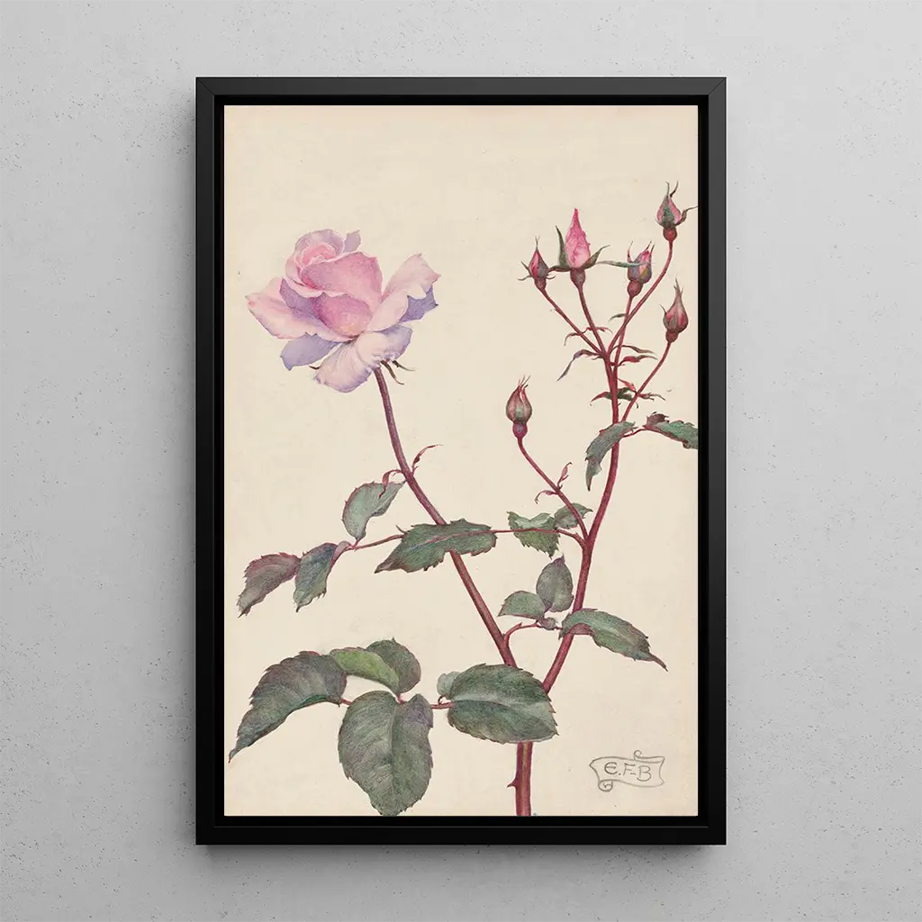 Kunsttrykket af Lady Pirrie Rose tager os med ind i en delikat verden, hvor naturen blomstrer i al sin pragt. Dette værk, skabt med en omhyggelig teknik, fremhæver bløde pastelnuancer, der fremkalder en følelse af ro. Rosebladen, fint detaljeret, virker næsten håndgribelig, mens den slørede baggrund skaber en drømmeagtig atmosfære. Kunstneren formår at fange selve essensen af blomsters midlertidige skønhed og inviterer betragteren til en beroligende refleksion. Hvert penselstrøg afslører en kunstnerisk følsomhed, der transcenderer det enkle maleri og forvandler dette lærred til et ægte vindue til en hemmelig have.