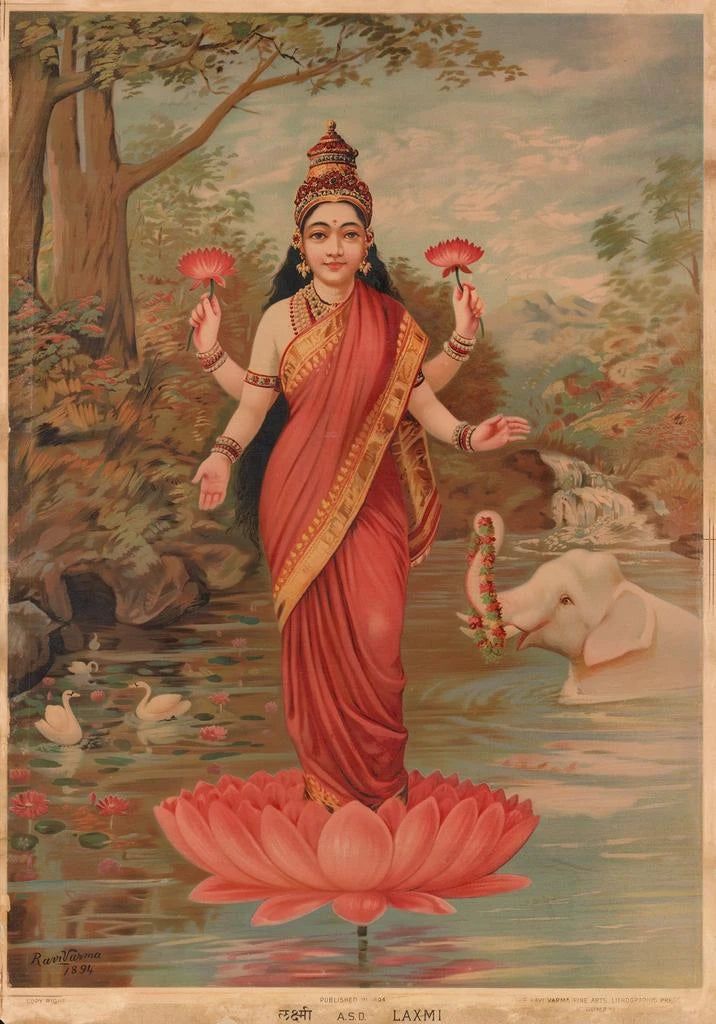 Maleri Lakshmi - Raja Ravi Varma | Kunsttryk