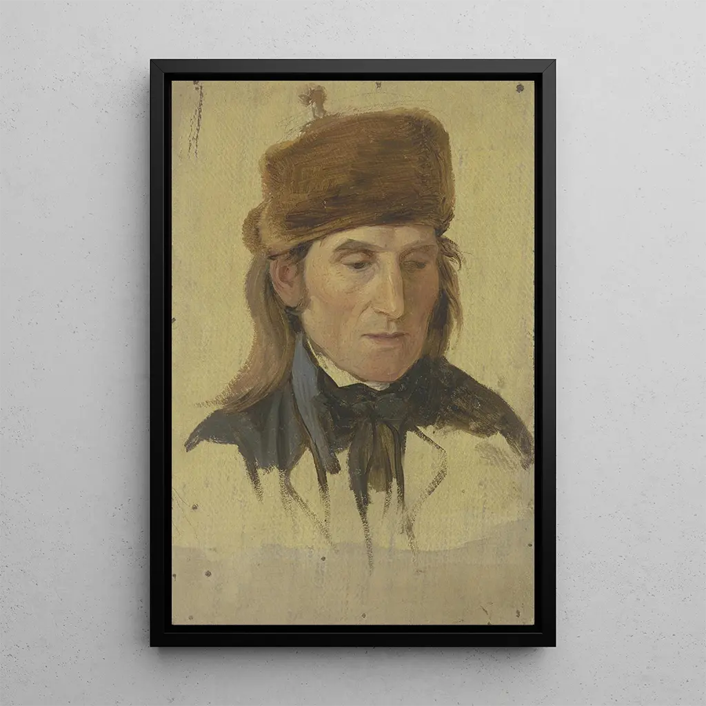 Kunsttrykket af "Fermager med pelsmünt" af Jakob Becker viser en robust mand, frosset i et øjeblik af eftertanke. Dette maleri, rigt på detaljer, fremhæver teksturerne i tøjet og nuancerne i huden, mens det leger med skygger og lys, der understreger karakteren af personen. Becker bruger en palette af naturlige farver, der fremkalder jord og himmel, for at skabe en atmosfære, der er både realistisk og følelsesladet. Værket inviterer til refleksion over landmændenes liv, ofte ukendt og undervurderet.