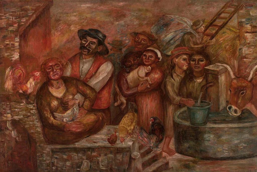 Tadeusz Makowski, aktiv i begyndelsen af det 20. århundrede, er en polsk maler, hvis værk er præget af en dyb tilknytning til sine rødder. Påvirket af ekspressionismen, har han formået at integrere elementer af folkelige kulturer i sine værker. Hans unikke stil, der forener tradition og modernitet, har gjort ham bemærket i datidens kunstlandskab. Landsbyboer er emblemativ for hans tilgang, der med blidhed og respekt fremhæver det landlige liv, samtidig med at det indgår i en kunstnerisk kontekst i fuld udvikling.