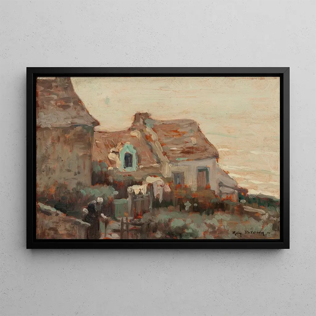Scène de village en Bretagne : et maleri, der levende skildrer den bretonske landlighed Kunsttrykket af Scène de village en Bretagne transporterer betragteren til hjertet af et idyllisk landskab, hvor det landlige liv blomstrer under en skiftende himmel. De livlige farver, fra de strålende grønne marker til de bløde nuancer af stenhusene, skaber en varm og indbydende atmosfære. Roy H Browns teknik, der kombinerer impressionisme og realisme, gør det muligt at fange det naturlige lys og giver liv til personerne, der travlt beskæftiger sig i dette maleriske miljø. Hvert detalje, fra de kastede skygger til refleksionerne på overfladerne, bidrager til en fuldstændig fordybelse i denne livsscene. Roy H Brown : en vidne til skønheden i de franske landskaber Roy H Brown er en kunstner, hvis arbejde fokuserer på at skildre landskaber og dagligdags scener, især i Bretagne. Aktiv i begyndelsen af det 20. århundrede, tilhører han en kunstbevægelse, der værdsætter skønheden i de franske landdistrikter, påvirket af impressionistiske strømninger. Hans tilgang karakteriseres ved en særlig opmærksomhed på detaljer og en farvepalette, der fremkalder lys og atmosfære i de steder, han maler. Brown har formået at fange essensen af Bretagne, et område rigt på traditioner og landskaber, hvilket gør ham til en uundværlig kunstner for dem, der interesserer sig for regional kunst. En dekorativ erhvervelse med mange fordele Kunsttrykket af Scène de village en Bretagne udgør et ideelt dekorativt stykke til forskellige rum, hvad enten det er en stue, et kontor eller et værelse. Dets trykkvalitet og trofasthed mod det originale værk gør det til et attraktivt valg for kunstelskere. Ved at integrere dette maleri i din indretning tilføjer du et strejf af charme og ro til dit hjem, samtidig med at du fejrer skønheden i de franske landskaber. Dette maleri inviterer til eftertanke og flugt, og forvandler ethvert væg til et åbent vindue mod det fredelige liv i en bretonske landsby.