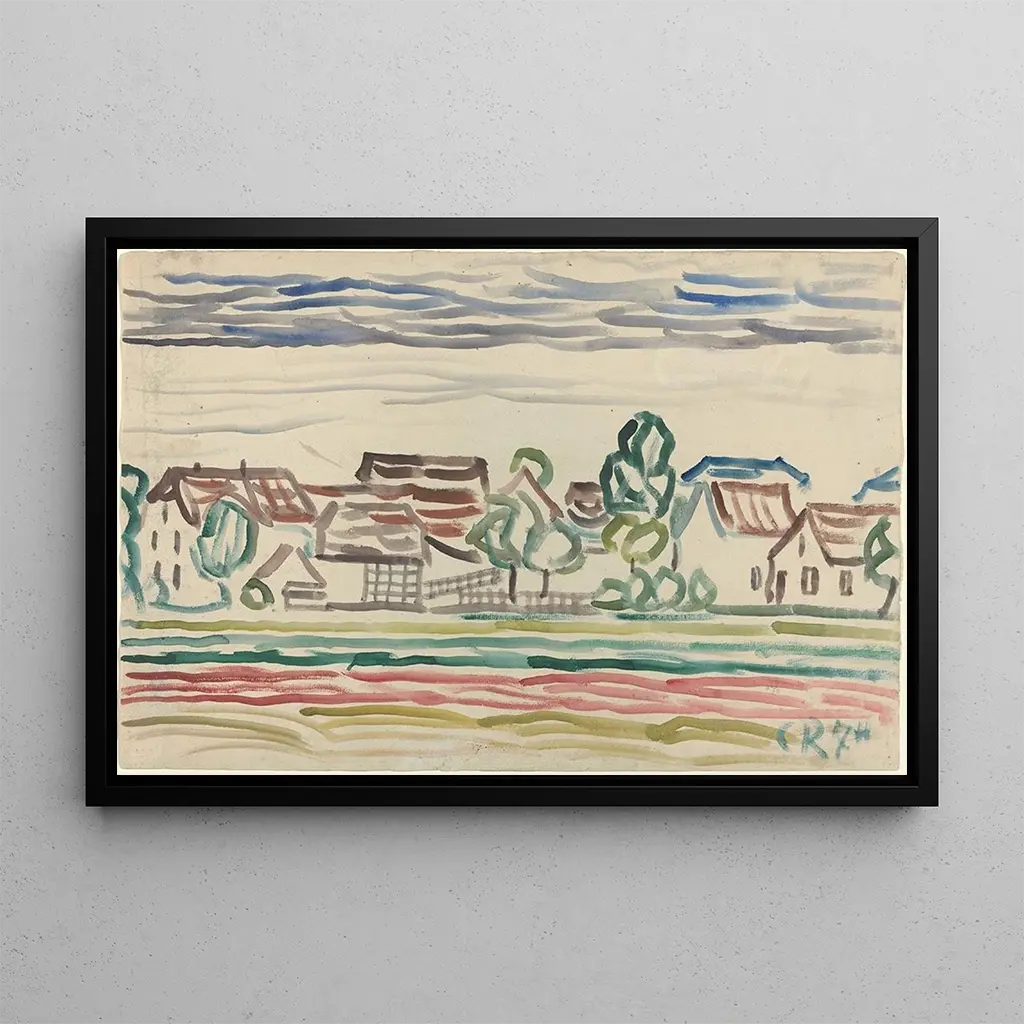 Kunsttrykket "Paysage" af Christian Rohlfs fremkalder en vild natur, hvor de levende farver og de abstrakte former blander sig for at skabe en poetisk atmosfære. De udtryksfulde penselstrøg og den dristige palet, domineret af dybe grønne nuancer og glimt af skinnende gult, giver liv til et landskab, der både virker velkendt og drømmende. Værket inviterer til meditativ eftertanke, hvor hvert element i kunsttrykket synes at ånde og vibrere i naturens rytme. Rohlfs, med sin unikke stil, formår at fange selve essensen af landskabet og forvandle virkeligheden til en intens visuel oplevelse.