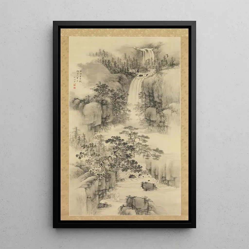 Landskabsmaleri med vandfald - Nakabayashi Chikutō | Kunsttryk