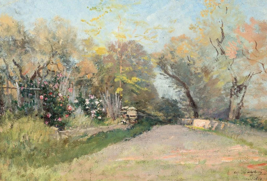 Alfred Wahlberg, svensk maler fra det 19. århundrede, er kendt for sine lyse landskaber og scener fra naturen. Påvirket af impressionismen har han formået at fange lyset og atmosfæren i sine motiver med stor følsomhed. Hans værk er en del af en periode, hvor kunstnere søgte at udtrykke deres følelser gennem naturen, væk fra akademiske konventioner. Wahlberg har rejst gennem Europa, især i Frankrig, hvor han blev inspireret af mestre som Claude Monet. Hans kunstneriske arv er vigtig, da han har bidraget til udviklingen af landskabet som genre, med fokus på lys og farve.