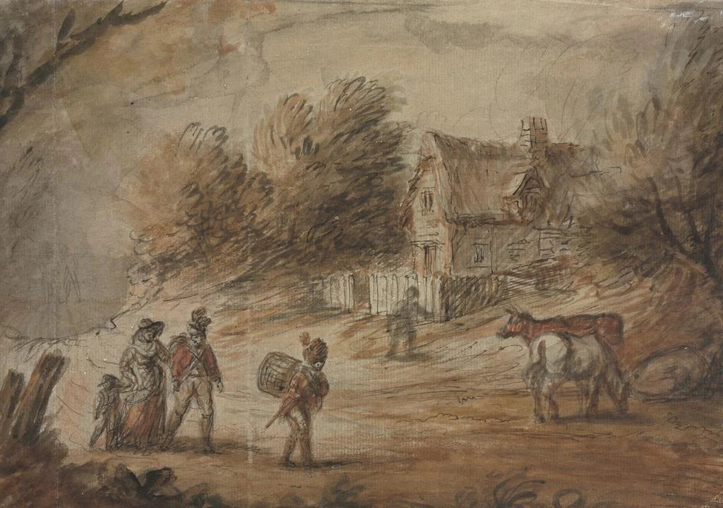 « Scène de campagne avec soldats » af Henry William Bunbury skildrer en livlig og dynamisk atmosfære, hvor militærlivet smelter sammen med naturens fredelige omgivelser. De levende farver og de omhyggelige detaljer i figurerne skaber en fængslende visuel fortælling. Bunbury, med sin karikaturstil, formår at formidle både humor og alvor i soldaternes liv. Udtrykkene hos figurerne, samt scenens naturlige elementer, fører betragteren ind i en hverdagsscene fra det 18. århundrede, hvor kunst og historie mødes.