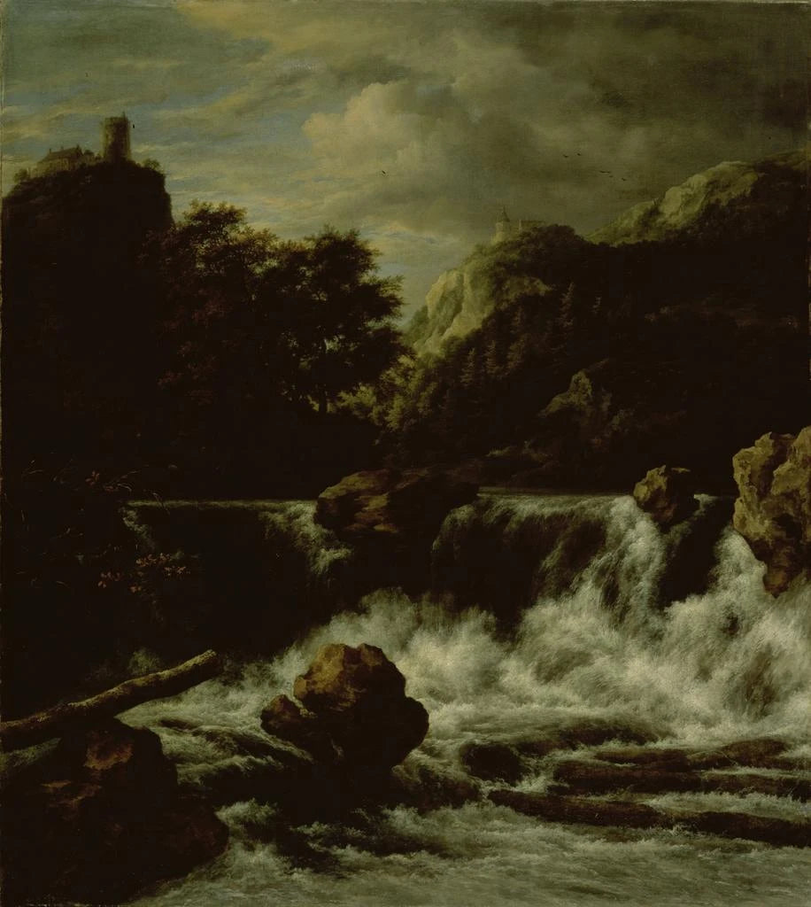 Bjergrigt landskab med vandfald - Jacob van Ruisdael
