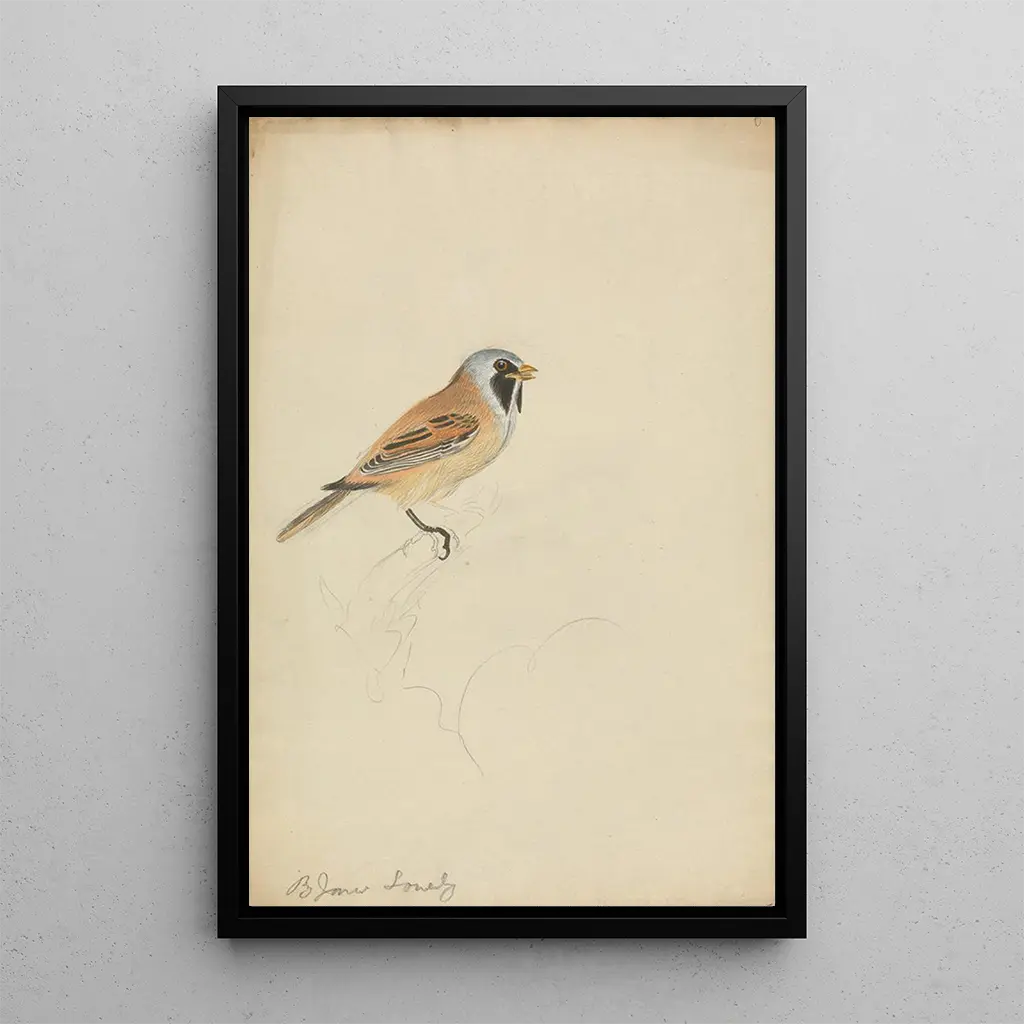 Kunsttrykket af Mésange à longue queue af James Sowerby indfanger selve essensen af naturen med en bemærkelsesværdig finesse. Pastelfarverne, der spænder fra blid blå til subtil rosa, blander sig harmonisk for at skabe en blid og beroligende atmosfære. Dette lærred, malet med en omhyggelig teknik, fremhæver detaljerne i fuglens fjerdragt, samtidig med at det fremkalder en følelse af lethed og ynde. Kompositionen, centreret omkring den siddende fugl, inviterer betragteren til at dykke ned i en verden, hvor naturens skønhed er i fokus.