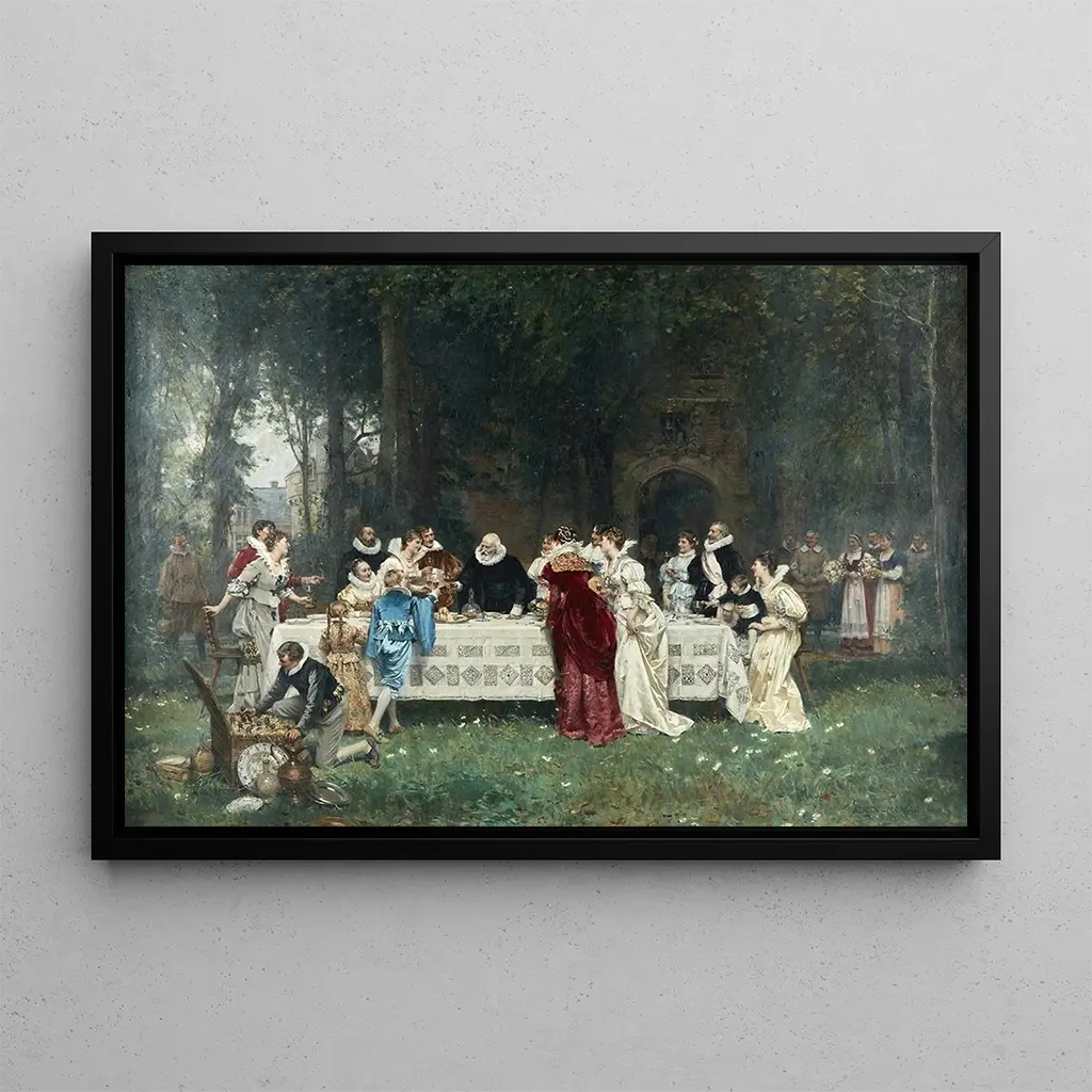 Le tableau Le Centenaire af Adrien Moreau er et værk, der fanger opmærksomheden med sin højtidelige atmosfære og sin mesterlige brug af farver. Kompositionen, centreret omkring en ikonisk figur, fremkalder et øjeblik af refleksion og fejring. Nuancerne af blå og guld blandes harmonisk, hvilket skaber en stemning, der er både nostalgisk og festlig. Kunstnerens teknik, der dygtigt kombinerer realisme og en smule idealisme, giver dette lærred en følelsesmæssig dybde. Hvert detalje, fra ansigtsudtryk til folder, fortæller en historie og inviterer seeren til at fordybe sig i dette øjeblik frosset i tiden.