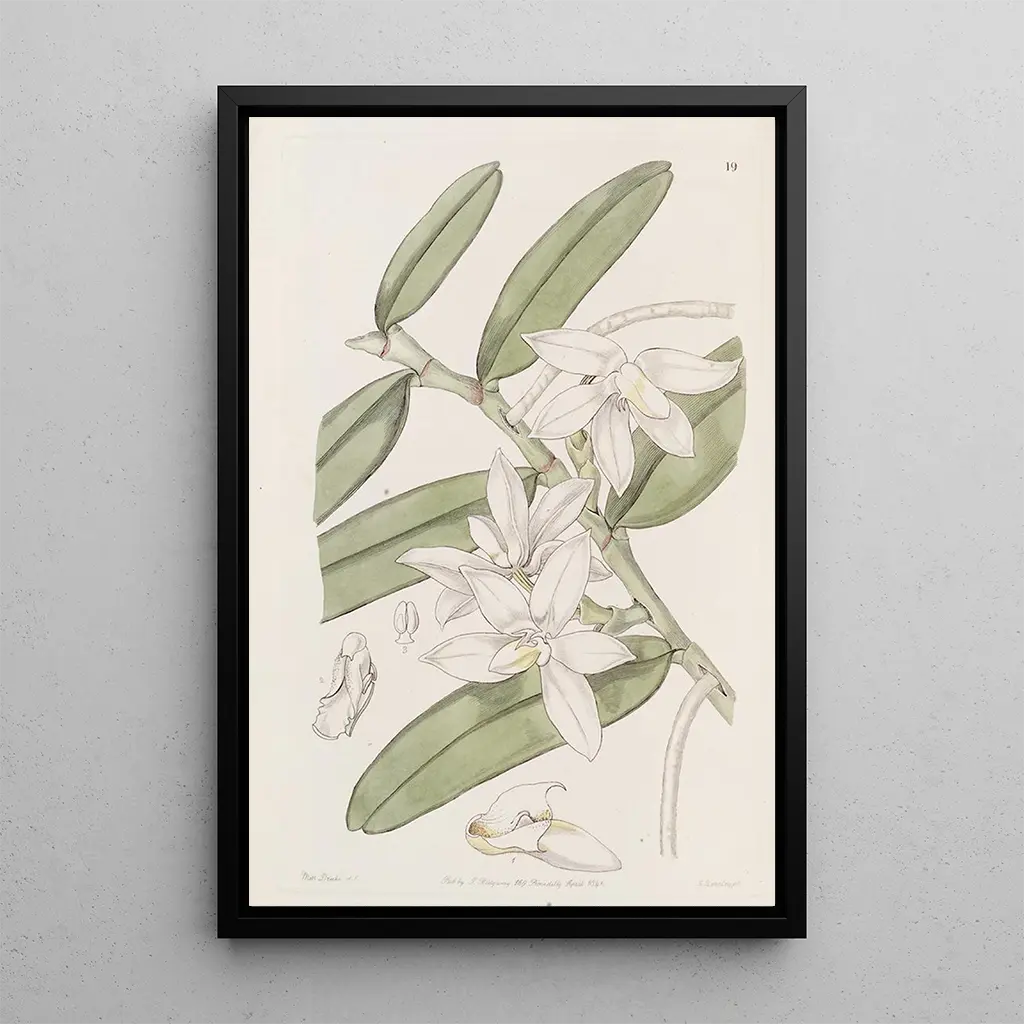 Fleshlip i tøfler, en fascinerende plante, afslører sig i en delikat komposition, hvor nuancer af grønt og violet væves sammen. Denne kunsttryk fremhæver de fine detaljer i dens blade, hvilket skaber en atmosfære, der både er beroligende og intrigant. Sydenham Edwards' illustrationsteknik, med sine fine streger og livlige farver, inviterer til en opmærksom betragning, der afslører den skjulte skønhed i denne botaniske art. Hvert element i lærredet synes at fange essensen af naturen selv og giver et indblik i en rig og varieret planteverden.