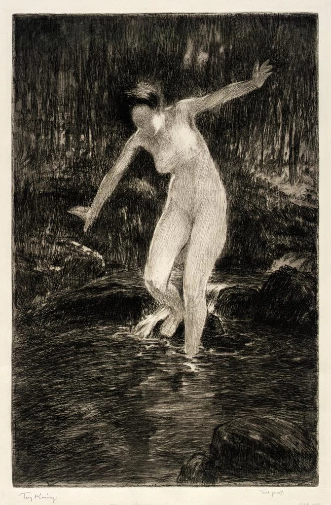 Troy Kinney, aktiv i begyndelsen af det 20. århundrede, er kendt for sine stemningsfulde landskaber, der hylder den amerikanske natur. Påvirket af sine samtidige impressionister udvikler han en unik stil, der kombinerer præcision og følsomhed. Kinney har ofte udforsket temaer som landlighed og ro, hvilket afspejler en tid, hvor industrialiseringen begyndte at ændre det naturlige landskab. Hans værker, selvom de er mindre kendte end nogle af hans jævnbyrdiges, er værdifulde for deres evne til at fange essensen af livet udendørs og vække en nostalgi for enklere tider.