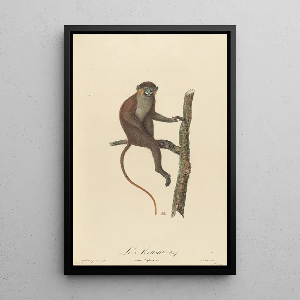 I dette fascinerende værk præsenterer Jean-Baptiste Audebert os for Moustac, et ikonisk dyr fra Madagascar. Lærredet er kendetegnet ved livlige farver og en omhyggelig teknik, der afslører pelsens tekstur og dyrets livlige udtryk. Atmosfæren, der udspringer af dette kunsttryk, er både dynamisk og fængslende, hvilket bringer betragteren ind i den rige verden af den malagassiske fauna. Audebert, med sit talent, formår at indfange dette øjeblik af liv, og tilbyder et vindue til en ofte ukendt dyreverden.