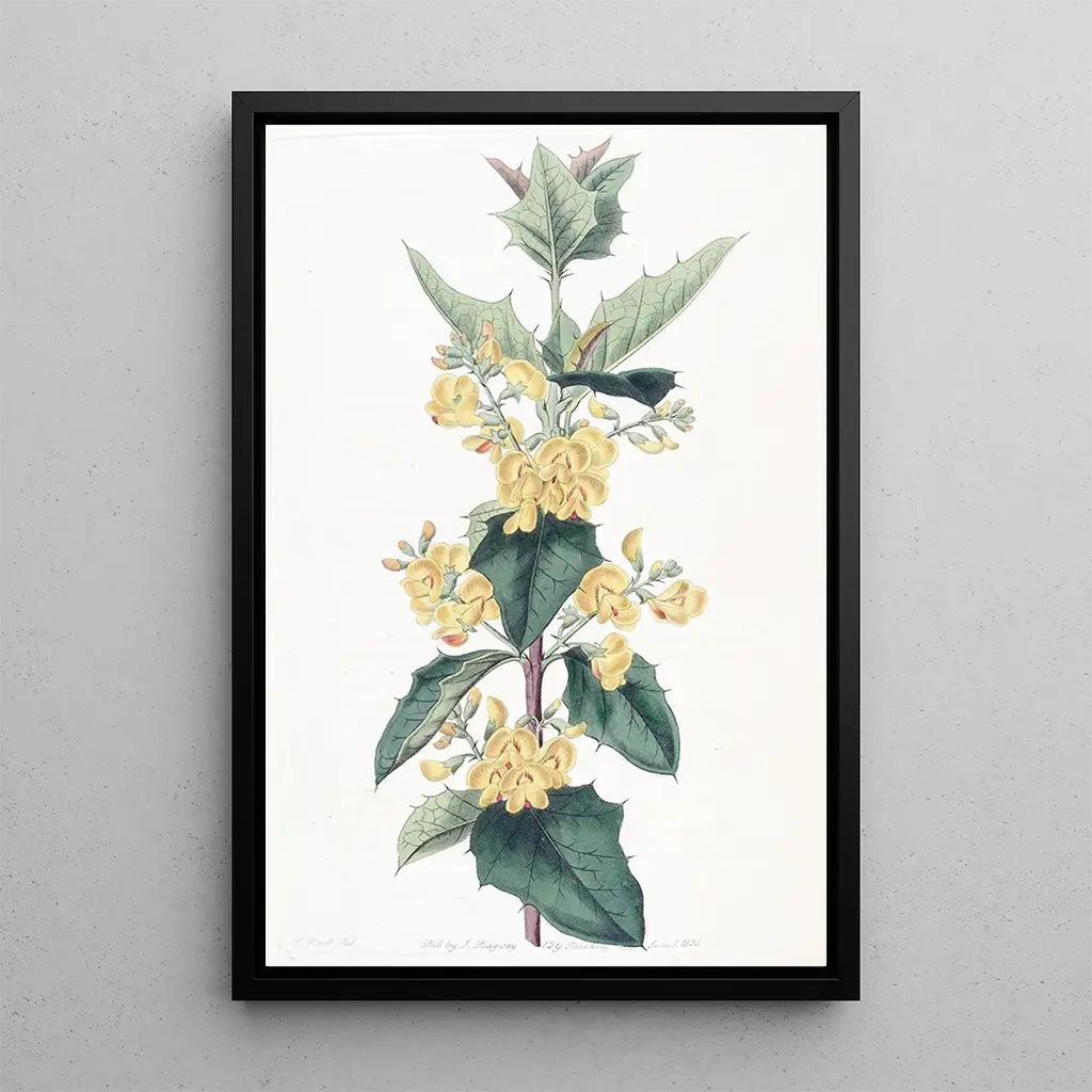 Kunsttrykket af podolobium trelobet er et dekorativt valg, der beriger dit opholdsrum. Uanset om det er i stuen, på kontoret eller i soveværelset, tilføjer dette billede et strejf af farve og livskraft. Det høje trykkvalitet sikrer en bemærkelsesværdig trofasthed mod detaljerne i det originale værk, hvilket gør det muligt at værdsætte illustrationens finesse. Ved at integrere dette kunsttryk i din indretning skaber du en varm og indbydende atmosfære, samtidig med at du hylder naturens skønhed. Dette stykke er en sand gevinst for enhver samling af botanisk kunst.