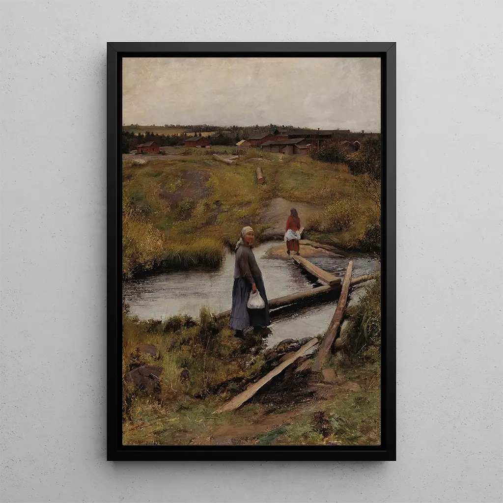 Kunsttrykket af "Råvejen" er et dekorativt stykke, der vil berige dit opholdsrum. Uanset om det er i en stue, et kontor eller et soveværelse, tilføjer dette lærred et strejf af elegance og ro. Dets trykkvalitet sikrer en bemærkelsesværdig trofasthed over for detaljerne i det originale værk, hvilket giver kunstelskere mulighed for at nyde Halonens vision. Ved at integrere dette billede i din indretning skaber du et inspirerende miljø, der er egnet til refleksion og flugt, samtidig med at du fejrer den finske kunstarv.
