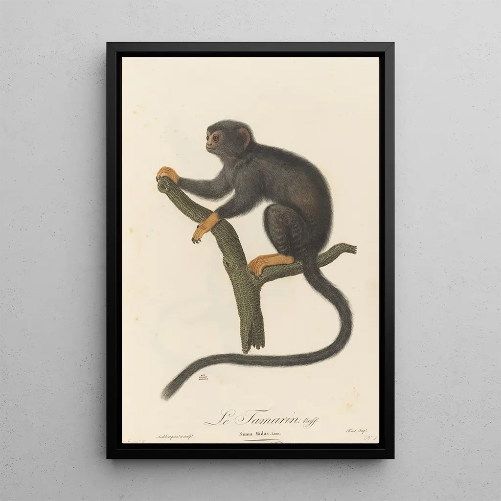 Le Tamarin, et ikonisk kunsttryk af Jean-Baptiste Audebert, tager os med ind i en livlig verden, hvor dyrelivet får liv. Med strålende farver og en omhyggelig teknik formår Audebert at fange essensen af dette fascinerende dyr. De fine detaljer i pelsen og det livlige udtryk i tamarinen vidner om en opmærksom observation og en passion for naturen. Atmosfæren i lærredet fremkalder en dyb forbindelse mellem mennesket og dyreverdenen, og inviterer seeren til at beundre den vilde skønhed, der omgiver ham.