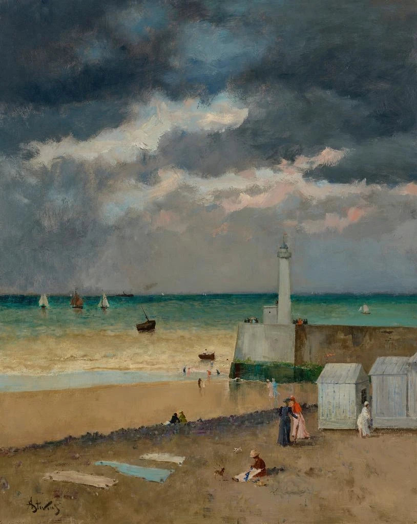 Alfred Stevens' stil er kendetegnet ved en imponerende beherskelse af lys og farver, der giver hans malerier en unik atmosfære. I "L Transport" er hver detalje omhyggeligt arrangeret, fra udtryksfulde ansigter til de delikate gestus hos figurerne. Kunstneren formår at skabe en dynamik mellem de menneskelige figurer og deres omgivelser, hvilket understreger vigtigheden af social interaktion. Den valgte farvepalette, både blid og levende, fremkalder en visuel harmoni, der fanger øjet og sindet. Stevens, som en sand malerpoet, formår at indgyde sine motiver en mærkbar livskraft, hvilket gør hver scene dybt følelsesladet. Dette maleri, med sin afbalancerede komposition og omhyggelige opmærksomhed på detaljer, skiller sig ud som et strålende eksempel på den kunstneriske realisme i sin tid.