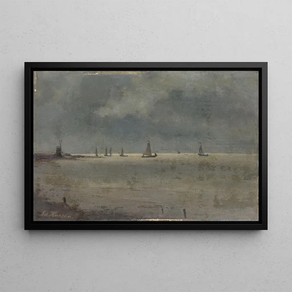 Le Zuiderzee : en hyldest til maritim ro Le tableau "Le Zuiderzee" d'Eduard Karsen évoque une atmosphère paisible où les nuances de bleu et de vert se mêlent harmonieusement. La composition met en avant un paysage marin, avec des voiliers qui glissent doucement sur les eaux calmes, tandis que le ciel, parsemé de nuages légers, reflète une lumière douce et apaisante. Karsen utilise une technique de peinture à l'huile qui donne vie aux détails, des vagues délicates aux reflets scintillants sur la surface de l'eau. L'œuvre invite à la contemplation, transportant le spectateur vers un moment de tranquillité au bord de l'eau. Eduard Karsen : en mester i hollandsk landskabskunst Eduard Karsen, aktiv i slutningen af 1800-tallet og begyndelsen af 1900-tallet, er kendt for sine maritime kunsttryk og scener fra dagligdagen i Holland. Påvirket af impressionisterne har han formået at fange lyset og atmosfæren i sine motiver med stor finesse. Karsen har ofte malet scener fra havet, inspireret af den naturlige skønhed ved de hollandske kyster. Hans arbejde er emblematiskt for en æra, hvor kunsten fokuserede på realistisk gengivelse af naturen, samtidig med at den indarbejdede elementer af poesi og drøm, hvilket har sikret ham en plads i kunsthistorien. En dekorativ kunsttryk med mange fordele Kunsttrykket af maleriet "Le Zuiderzee" er et ideelt valg til at forskønne dit hjem, uanset om det er i stuen, på kontoret eller i soveværelset. Dets beroligende farvepalette og rolige atmosfære tilføjer et strejf af fred og ro til ethvert rum. Kvaliteten af kunsttrykket garanterer en trofast gengivelse af detaljerne i det originale værk, hvilket gør det muligt at nyde dets æstetiske appel dagligt. Ved at integrere dette kunsttryk i din indretning skaber du et miljø, der indbyder til afslapning og eftertanke, samtidig med at du tilføjer et kunstværk, der vækker beundring.