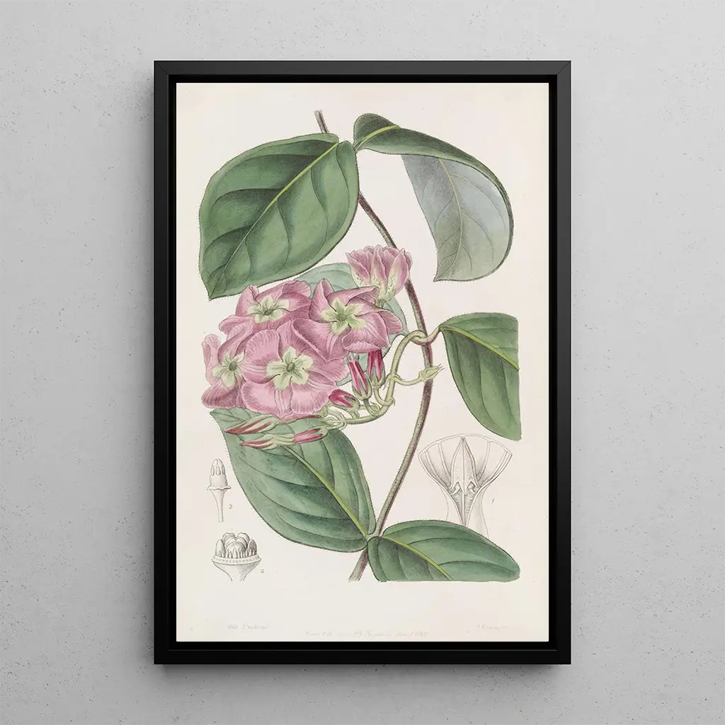 Kunsttrykket "L'Échites Francisco Rivière" af Sydenham Edwards tager os med ind i en livlig verden af farver og detaljer. Dette kunsttryk fremhæver en tropisk plante, hvis nuancer af grønt og blåt smelter harmonisk sammen, hvilket skaber en atmosfære, der både er beroligende og fængslende. Akvarelteknikken, anvendt med stor dygtighed, formidler bladenes delikatesse og blomstens lysstyrke. Hvert penselstrøg synes at invitere betragteren til at komme nærmere, beundre naturens kompleksitet, samtidig med at det giver en følelse af ro og flugt.
