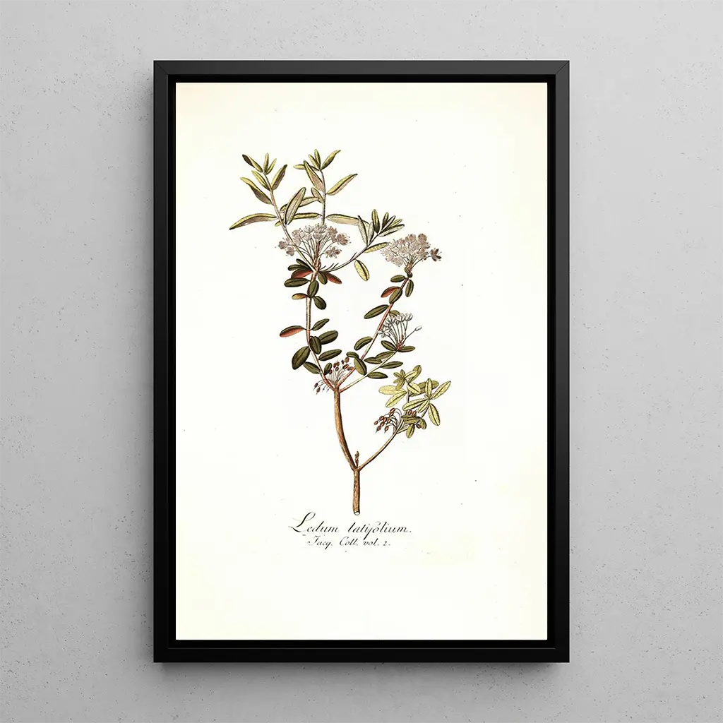 Kunsttrykket af Ledum latifolium er et ideelt dekorativt stykke til ethvert interiør, hvad enten det er en stue, et kontor eller et soveværelse. Dets trykkvalitet sikrer en bemærkelsesværdig trofasthed til de originale detaljer, hvilket gør det muligt at værdsætte hver nuance og tekstur. Ved at integrere dette maleri i din indretning tilføjer du et strejf af natur og ro til dit rum. Den æstetiske appel af dette værk, med sin blanding af bløde farver og organiske former, gør det til et perfekt valg for dem, der søger en beroligende og inspirerende atmosfære i deres daglige miljø.