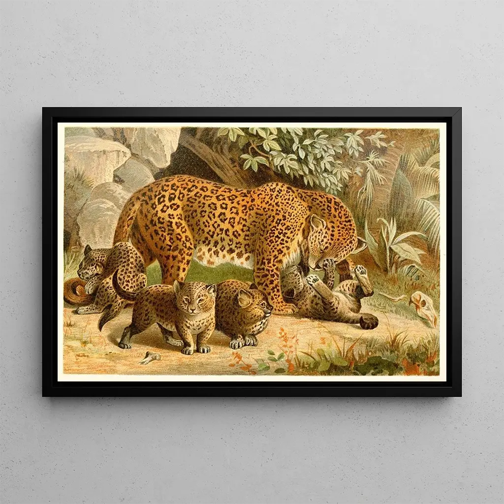 Léopards : en vild danse i naturens hjerte Den kunsttryk "Léopards" præsenterer en fængslende scene, hvor disse majestætiske katte bevæger sig i deres naturlige habitat. De varme og jordnære farver, kombineret med grønne nuancer, fremkalder savannens rigdom. Dynamikken i værket, med leoparderne i bevægelse, formidler en følelse af kraft og ynde. Den anonyme kunstner har formået at fange essensen af disse dyr, hvilket gør dette kunsttryk både levende og fascinerende. Hvert blik på dette lærred inviterer til en fordybelse i en vild og mystisk verden. Anonym: et spejl af den traditionelle dyrekunst Dyrekunsten, hvor "Léopards" er et perfekt eksempel, har altid haft en vigtig plads i kunstens historie. Selvom kunstneren bag dette værk forbliver anonym, vidner hans arbejde om en dyb forståelse for dyrenes adfærd og levesteder. Denne periode, præget af en stigende interesse for fauna og flora, har set mange kunstnere forsøge at indfange naturens skønhed. "Léopards" er en del af denne tradition og giver et værdifuldt indblik i samspillet mellem menneske og dyreverden. En dekorativ erhvervelse med mange fordele Kunsttrykket "Léopards" er ideelt til at tilføre et strejf af eksotisme og karakter til din indretning. Uanset om det er i stuen, soveværelset eller på kontoret, tiltrækker dette lærred opmærksomhed og vækker beundring. Dets trykkvalitet sikrer en høj detaljérighed, så man kan føle kraften i det originale værk. Ved at vælge dette kunsttryk giver du dit rum en unik atmosfære, hvor naturen og kunsten mødes i harmoni, hvilket skaber en inspirerende og beroligende ramme.