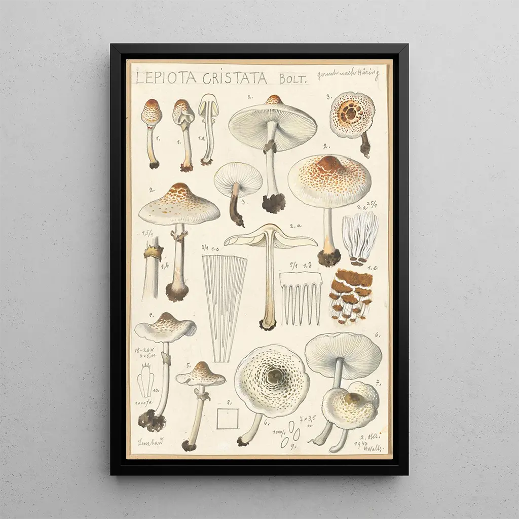 At vælge et kunsttryk af Lepiota cristata til din indretning er en fremragende idé. Uanset om det er for at forskønne en stue, et kontor eller et værelse, tilføjer dette billede et strejf af sofistikeret elegance og ro. Dets palette af bløde og naturlige farver integreres harmonisk i forskellige dekorative stilarter, uanset om de er moderne eller traditionelle. Kvaliteten af kunsttrykket sikrer en trofast gengivelse af det originale værk, hvilket gør det muligt at værdsætte dets æstetiske appel dagligt. Ved at tilføje dette lærred til dit rum inviterer du til naturens delikate skønhed, samtidig med at du hylder en mester i renæssancen.