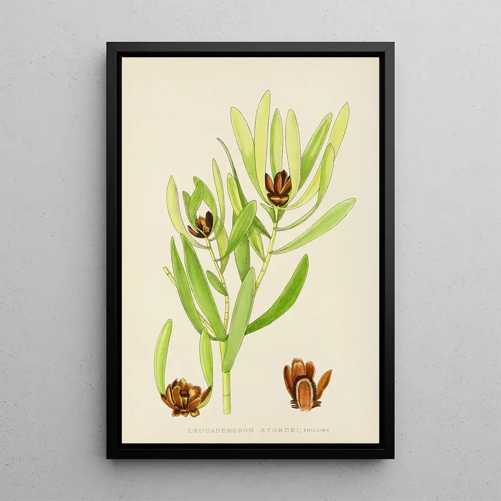 Kunsttrykket af Leucadendron stokoei er et dekorativt stykke, der vil pryde ethvert interiør, uanset om det er i en stue, et kontor eller et soveværelse. Dets trykkvalitet sikrer en bemærkelsesværdig trofasthed mod det originale værk, samtidig med at det tilføjer et strejf af eksotisme og friskhed til din indretning. Med sin æstetiske appel inviterer dette billede til eftertanke og flugt, hvilket gør hvert blik til et øjeblik af ro og forundring.