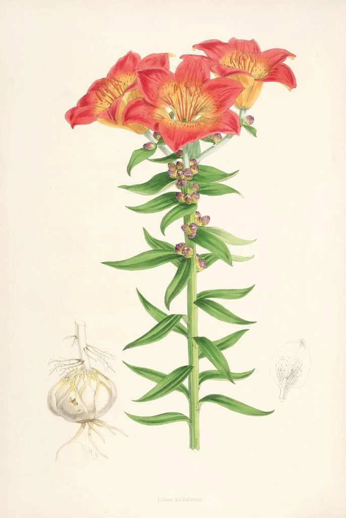 Walter Hood Fitch, aktiv i det 19. århundrede, er anerkendt som en af de største botaniske kunstnere i sin tid. Hans arbejde blev påvirket af datidens videnskabelige opdagelser, hvor studiet af planter og blomster fik stigende betydning. Fitch formåede at forene videnskabelig stringens med æstetik, hvilket gjorde ham i stand til at skabe værker, der både er informative og visuelt fængslende. Hans kunsttryk, herunder Lilium bulbiferum, er blevet referencepunkter inden for botanik, hvilket vidner om kunstens vigtige rolle i formidlingen af videnskabelig viden.
