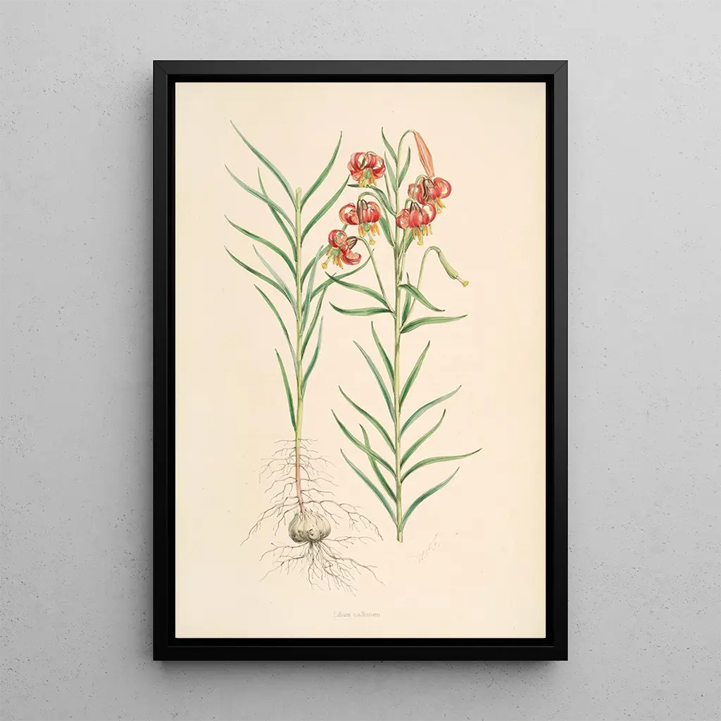 Kunsttrykket af Lilium callosum er et dekorativt valg, der vil berige dit hjem. Uanset om du hænger det i stuen, på et kontor eller i et soveværelse, tilføjer dette lærred et strejf af friskhed og natur. Dets trykkvalitet og opmærksomhed på detaljer gør dette værk til et centralt element i din indretning. Ved at integrere dette billede i dit rum skaber du en beroligende og inspirerende atmosfære, samtidig med at du hylder blomsterens skønhed og kunsten at illustrere botanisk.