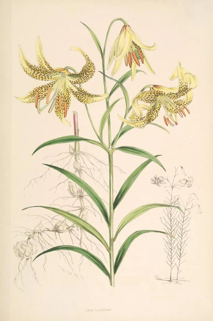 Walter Hood Fitch, født i Skotland, er en pioner inden for botanisk illustration i det 19. århundrede, anerkendt for sin evne til at forene videnskab og kunst. Hans uddannelse ved London School of Fine Arts og hans arbejde i botaniske haver har gjort ham i stand til at udvikle en unik stil, der kombinerer videnskabelig stringens med æstetisk følsomhed. Fitch har illustreret tusindvis af planter, herunder Lilium Leichtlinii, og bidraget til dokumentationen af den globale flora. Hans arv består, og inspirerer mange samtidige kunstnere og botanister gennem hans omhyggelige og passionerede tilgang.