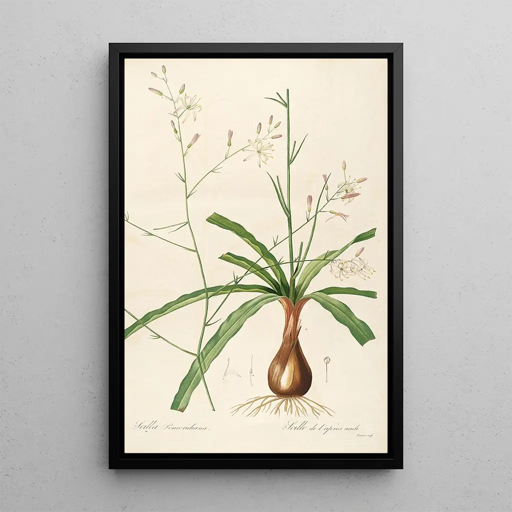Den kunsttryk af liliacées Pl01, signeret Pierre Joseph Redouté, er et værk, der fejrer mangfoldigheden og elegance af blomster fra liliacées-familien. Med en palette af livlige farver og detaljerede elementer transporterer dette lærred seeren til en frodig have, hvor hver blomst synes at fortælle en historie. Redouté, mester i akvarel, formår at fange lyset og teksturen af kronbladene, hvilket skaber en atmosfære af friskhed og liv. Dette værk er en ægte invitation til forundring over naturens skønhed.