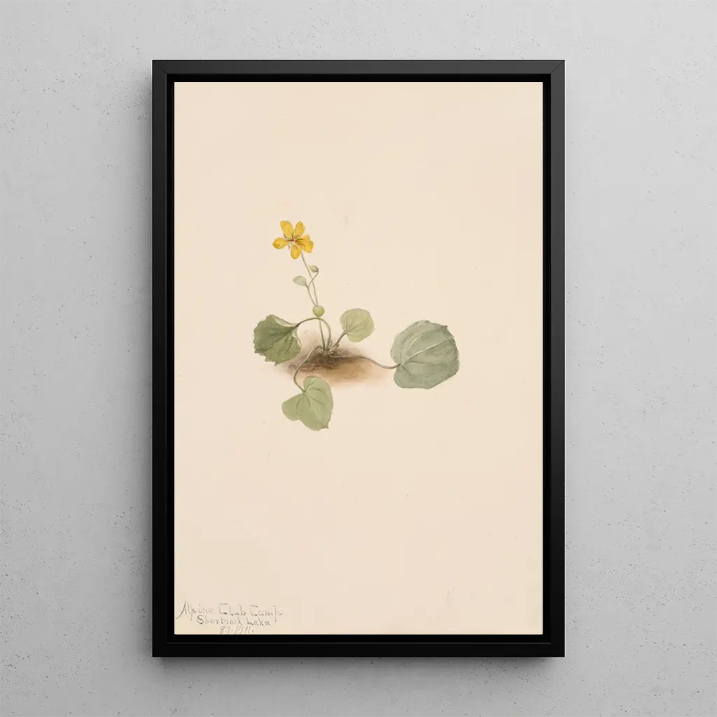 Den kunsttryk af Violette orbiculaire, også kendt som Viola orbiculata, fanger selve essensen af naturen med sine bløde nuancer og afrundede former. Nuancerne af lilla og hvid blandes yndefuldt, hvilket skaber en beroligende og kontemplativ atmosfære. Kunstneren Mary Vaux Walcott formår gennem sin omhyggelige teknik at formidle denne blomst's skrøbelighed og flygtige skønhed. Hvert petal synes at vibrere under lyset og inviterer betragteren til en visuel udforskning, der fremkalder en følelse af enge og skove, hvor disse violer blomstrer.