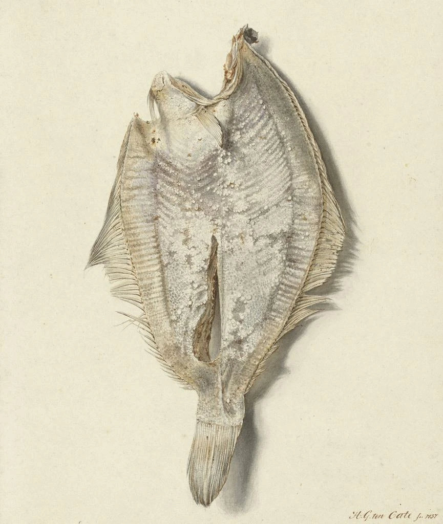 Dette elegante kunstværk af Hendrik Gerrit ten Cate skildrer en lille fladfisk med fin detalje og subtil farvepalette. Perfekt til samlere af maritim kunst eller som en sofistikeret tilføjelse til ethvert hjem.