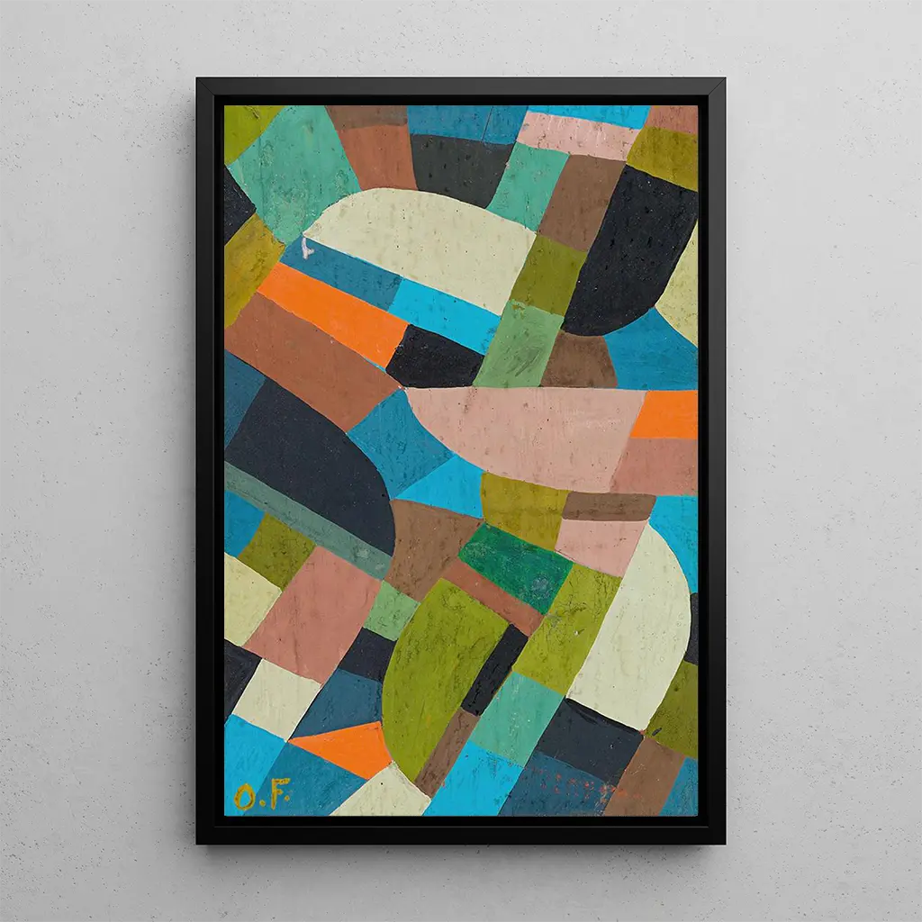 "Petite composition" af Otto Freundlich er et værk, der indkapsler jagten på harmoni mellem former og farver. Dette lærred, rigt på nuancer og teksturer, præsenterer en sammenstilling af geometriske former, der flettes ind i hinanden med flydende elegance. De valgte farver, fra jordnære nuancer til lyse glimt, skaber en atmosfære, der både er beroligende og stimulerende. Freundlich anvender en blandingsteknik, der giver dybde til hans kunstværker, hvilket gør det muligt for betragteren at føle en følelsesmæssig forbindelse til værket. Hvert element synes at kommunikere med de andre, hvilket skaber en sammenhængende og fængslende helhed.