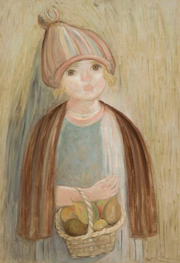 Kunsttryk | Lille pige med en kurv med pærer - Tadeusz Makowski