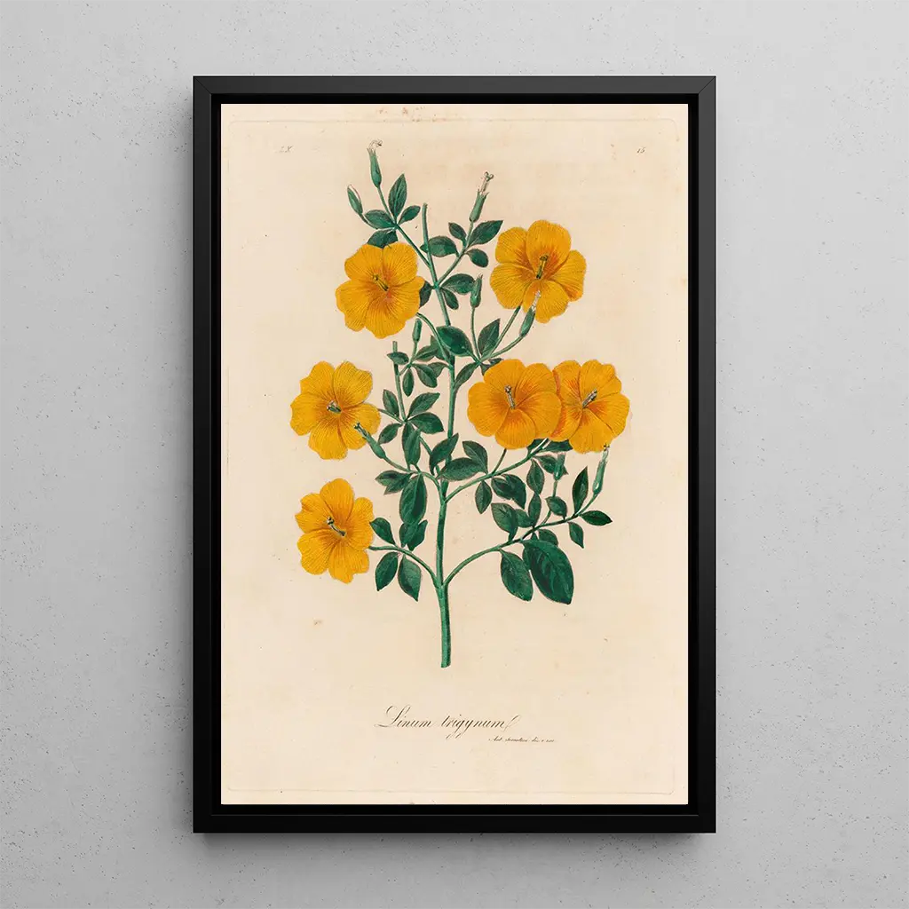 Kunsttrykket af "Linum trigynum" er et perfekt valg for at tilføre et strejf af natur til din indretning. Uanset om det er i stuen, på kontoret eller i soveværelset, vil dette lærred tiltrække med sin trykkvalitet og trofasthed mod originalens farver. Det æstetiske tiltrækningskraft gør det til et dekorativt element, der nemt integreres i forskellige indretningstyper. Ved at vælge dette kunsttryk vælger du en dekoration, der fejrer blomsterens skønhed og tilføjer en følelse af ro til dit opholdsrum.